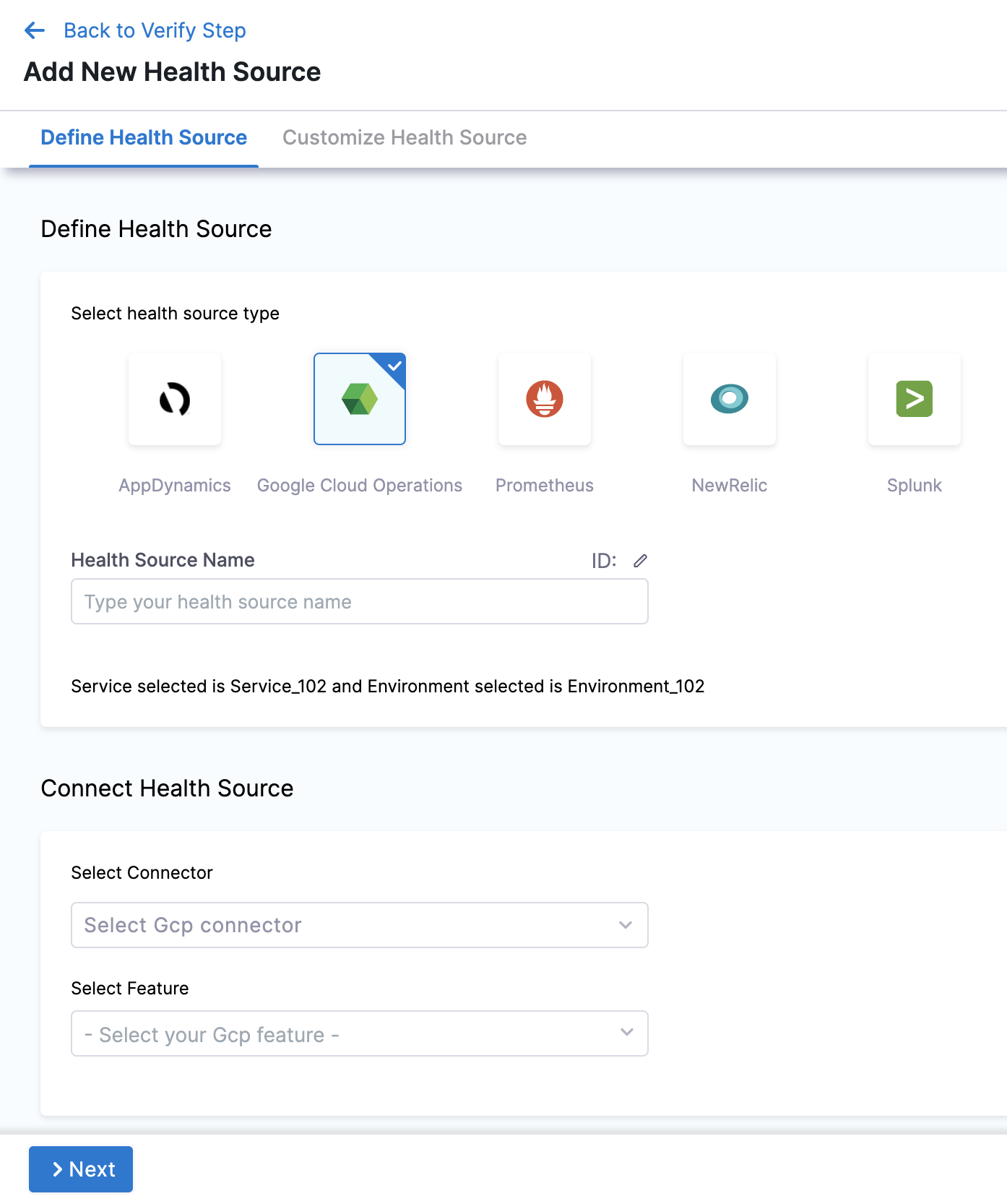 In Select health source type, select Google Cloud Operations.