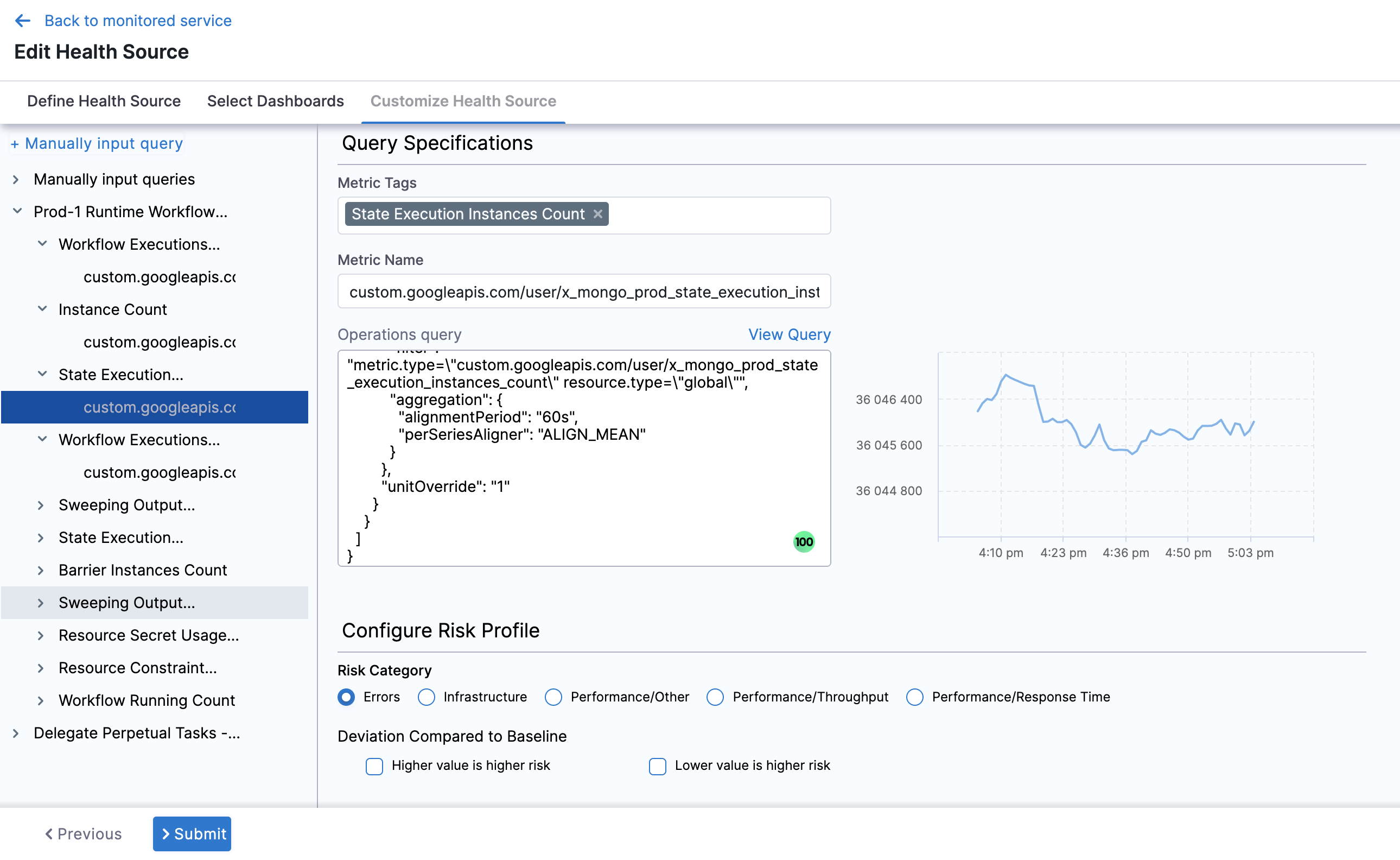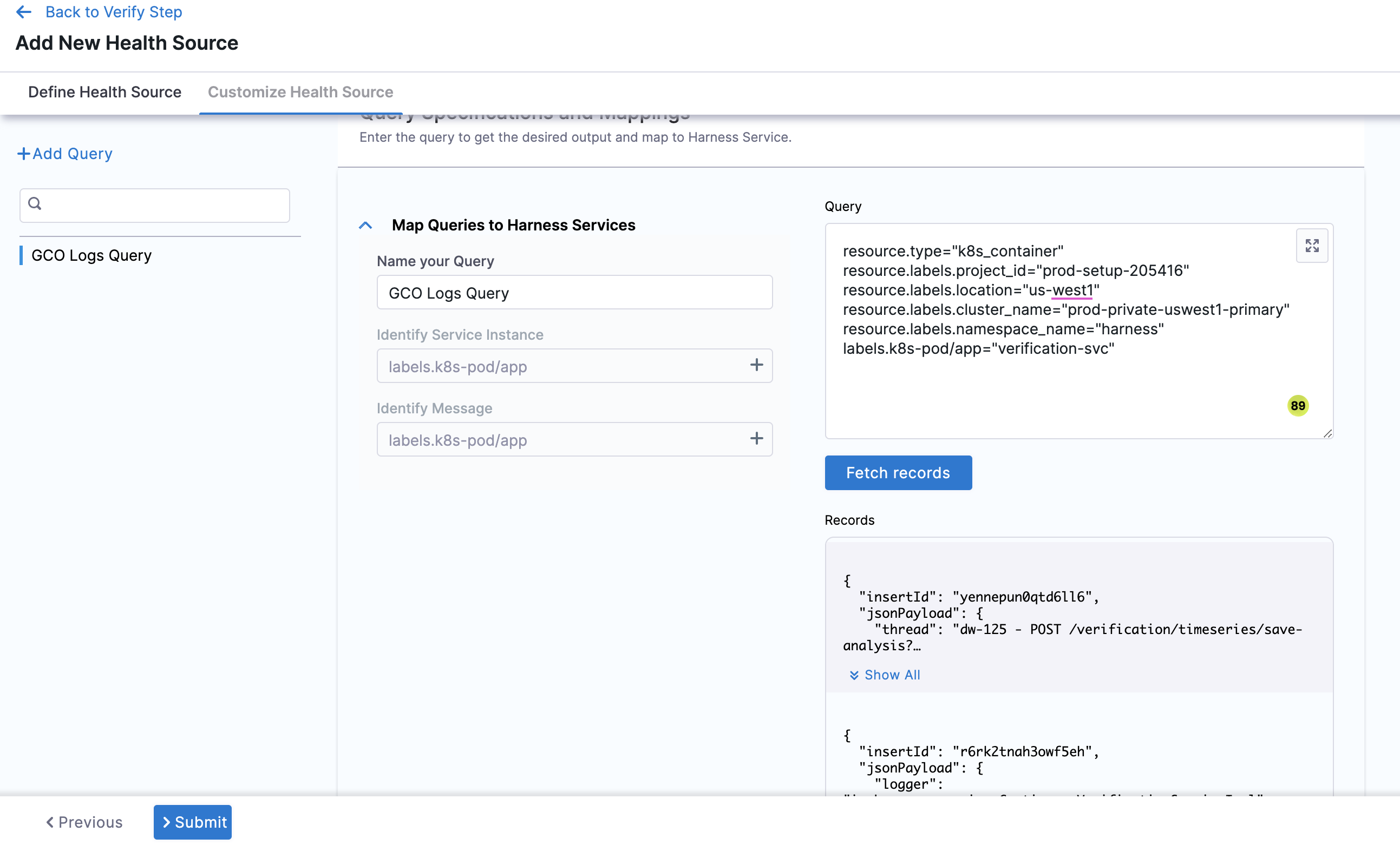 You can customize the metrics to map the Harness Service to the monitored environment in Query Specifications and Mapping settings.